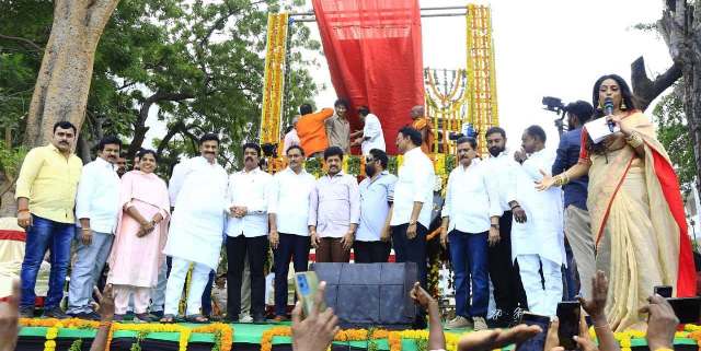 విజయవాడ లెనిన్ సెంటర్ సూపర్స్టార్ కృష్ణ కాంస్య విగ్రహాన్ని ఆదివారం పద్మాలయ సంస్థ అధినేత, కృష్ణ సోదరుడు ఘట్టమనేని ఆదిశేషగిరిరావు, కృష్ణ మనుమడు, రమేష్బాబు కుమారుడు ఘట్టమనేని జయకృష్ణ ఆవిష్కరించారు. ఈ సందర్భంగా ఆంధ్రప్రదేశ్ రాష్ట్ర ఎక్సైజ్ శాఖా మంత్రి కొల్లు రవీంద్ర మాట్లాడుతూ ప్రజల్లో చైతన్యం కలిగించిన చిత్రాలను అందించిన సూపర్స్టార్ కృష్ణ నేటితరం హీరోలకు ఆదర్శంగా నిలిచారని అన్నారు. డిప్యూటీ స్పీకర్ రఘురామకృష్ణంరాజు మాట్లాడుతూ అల్లూరి సీతారామరాజు వంటి స్వాతంత్య్ర పోరాటయోధుడి గాథను తెలుగు ప్రేక్షకులకు అందించిన కృష్ణ మానవత్వానికి మరోపేరు అని అన్నారు. ఎంపీ కేశినేని చిన్ని మాట్లాడుతూ అశ్వనీదత్ నిర్మిస్తున్న ‘శ్రీనివాస మంగాపురం’ సినిమాను ఆదరించడం ద్వారా జయకృష్ణను సూపర్స్టార్గా నిలబెట్టాలని కోరారు. ఎమ్మెల్యే బొండా ఉమామహేశ్వరరావు మాట్లాడుతూ తెలుగుజాతి ఉన్నంతకాలం గుర్తుండిపోయే వ్యక్తి కృష్ణ అని అన్నారు. జయకృష్ణ మాట్లాడుతూ తాతగారి పేరు నిలబెట్టడమే తన లక్ష్యమన్నారు. అనంతరం వక్తలు సూపర్స్టార్ కృష్ణ కాంస్య విగ్రహం ప్రతిష్టించిన నిర్వాహకులకు అభినందనలు తెలిపారు. ఈ కార్యక్రమంలో ఎమ్మెల్యేలు గద్దె రామ్మోహన్, వెనిగండ్ల రాము, మాజీ ఎమ్మెల్సీ బుద్దా వెంకన్న, నిర్మాత సి.అశ్వనీదత్, జెమినీ కిరణ్, బోస్, విగ్రహ కమిటీ కన్వీనర్లు కె.సుధా స్వామి, జితేంద్ర, శీరం బుజ్జి తదితరులు పాల్గొని ప్రసంగించారు.
