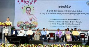 విజయవాడ, నేటి పత్రిక ప్రజావార్త : అమరజీవి శ్రీ పొట్టి శ్రీరాములు వర్ధంతి సందర్భంగా ఆత్మార్పణ దినం – భాషా ప్రయుక్త రాష్ట్రాల ఆవిర్భావం గా రాష్ట్ర ప్రభుత్వం నగరంలోని తుమ్మలపల్లి కళా క్షేత్రంలో సోమవారం నిర్వహించిన కార్యక్రమానికి ముఖ్యమంత్రి నారా చంద్రబాబు నాయుడు ముఖ్య అతిధిగా హాజరయ్యారు.. ఈ సందర్భంగా పొట్టి శ్రీ రాములు త్యాగనిరతిని ముఖ్యమంత్రి కొనియాడి ఆయన విగ్రహానికి ఘనంగా నివాళులు అర్పించారు. తొలుత భాషా సాంస్కృతిక శాఖ ఏర్పాటు చేసిన అమరజీవి శ్రీ పొట్టి శ్రీరాములు జీవిత ఛాయా …