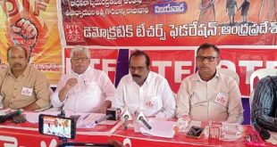 విజయవాడ, నేటి పత్రిక ప్రజావార్త : పాఠశాల విద్యలో మాతృభాషా మాధ్యమం అమలు చేయాలని ఉమ్మడి సర్వీసు రూల్స్ కు ప్రత్యామ్నాయం అమలు చేయాలని డెమోక్రటిక్ టీచర్స్ ఫెడరేషన్ అధ్యక్షులు కే నరహరి ప్రభుత్వాన్ని డిమాండ్ చేశారు. శనివారం ఆంధ్రప్రదేశ్ డెమోక్రటిక్ టీచర్స్ ఫెడరేషన్ ఆధ్వర్యంలోధర్నా చౌక్ లో ధర్నా జరిగింది. ఈ కార్యక్రమంలో ఫెడరేషన్ అధ్యక్షులు కే. నరహరి, ప్రధాన కార్యదర్శి ఎన్వి. రమణయ్య, వర్కింగ్ జనరల్ సెక్రటరీ ఎన్. శ్రీనివాసరావు, రాష్ట్ర ఉపాధ్యక్షుడు కారే. కృష్ణ తదితరులు పాల్గొని మాట్లాడుతూ ఉపాధ్యాయ …