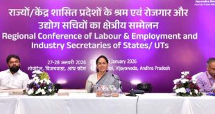 విజయవాడ, నేటి పత్రిక ప్రజావార్త : కార్మికుల హక్కుల పరిరక్షణ, ఉపాధి అవకాశాల పెంపుతోపాటు పరిశ్రమలకు అనుకూల వాతావరణం కల్పించడమే కొత్త లేబర్ కోడ్ ల ప్రధాన లక్ష్యమని కేంద్ర కార్మిక, ఉపాధి శాఖ సహాయ మంత్రి శోభా కరంద్లాజే తెలిపారు. స్థానిక నోవాటెల్ హోటల్ లో మంగళవారం ఏర్పాటు చేసిన ప్రాంతీయ కార్మిక సదస్సు (Regional Conference of Labour & Employment and Industry Secretaries of States/UTs), కొత్త కార్మిక సంస్కరణల (Labor Codes) పై కేంద్ర కార్మిక శాఖ …