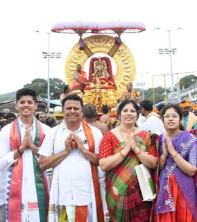 జనసేన పార్టీ రాష్ట్ర PAC సభ్యులు, ఉమ్మడి చిత్తూరు చిత్తూరు జిల్లా అధ్యక్షులు & ఆంధ్రప్రదేశ్ హస్తకళా నైపుణ్యాభివృద్ధి సంస్థ చైర్మన్ డాక్టర్ పసుపులేటి హరిప్రసాద్ గారు కుటుంబ సమేతంగా తిరుమల శ్రీవారి సాలకట్ల బ్రహ్మోత్సవాల సందర్భంగా స్వామివారి వాహనాలను మోసే వాహన బేరర్లకు రూ.లక్ష రూపాయలను బ్రహ్మోత్సవ బహుమానంగా అందజేశారు. ఈ సందర్భంగా డాక్టర్ పసుపులేటి హరిప్రసాద్ మాట్లాడుతూ…“గత 13 సంవత్సరాలనుండి ప్రతి ఏటా బ్రహ్మోత్సవాల్లో వాహన బేరర్లకు లక్ష రూపాయలు బ్రహ్మోత్సవ బహుమానంగా ఇస్తున్నాం. స్వామివారి సేవలో ఎల్లప్పుడూ నిబద్ధతతో పాల్గొంటున్న వాహన బేరర్లకు ఈ బహుమానం ఇవ్వడం నాకు ఎంతో ఆనందంగా ఉంది” అని తెలిపారు.