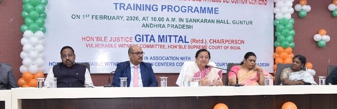 సుప్రీంకోర్టు నియమించిన వల్నరబుల్ విట్నెస్ కమిటీ, ఆంధ్రప్రదేశ్ హైకోర్టు వల్నరబుల్ విట్నెస్ సెంటర్ల కమిటీ సహకారంతో ఆదివారం గుంటూరు జిల్లా కలెక్టర్ కార్యాలయ ఆవరణలోని ఎస్.ఆర్. శంకరన్ హాల్లో న్యాయాధికారులకు శిక్షణ కార్యక్రమాన్ని నిర్వహించింది. ఈ కార్యక్రమానికి జస్టిస్ గీతా మిట్టల్ హాజరై జ్యోతి ప్రజ్వలన చేసి ప్రారంభించారు.