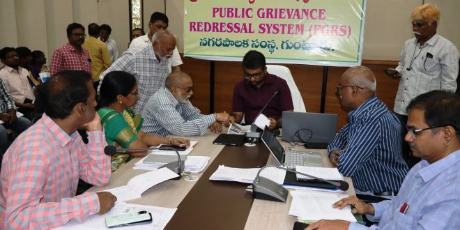 గుంటూరు నగరపాలక సంస్థలో ప్రతి సోమవారం జరిగే పిజిఆర్ఎస్, కాల్ సెంటర్ కి అందే ఫిర్యాదులను కేటగిరిలుగా వేరు చేసి ఒక్కరోజులోనే పరిష్కారానికి చర్యలు తీసుకోవాలని, పరిష్కారంకు జాప్యం జరిగితే తగిన వివరాలను అర్జీదారులకు తెలియచేయాలని నగర కమిషనర్ కె.మయూర్ అశోక్ స్పష్టం చేశారు. సోమవారం నగరపాలక సంస్థ ప్రధాన కార్యాలయంలోని కౌన్సిల్ హాల్లో జరిగిన పిజిఆర్ఎస్ ద్వారా ప్రజల నుండి అర్జీలను తీసుకున్నారు.