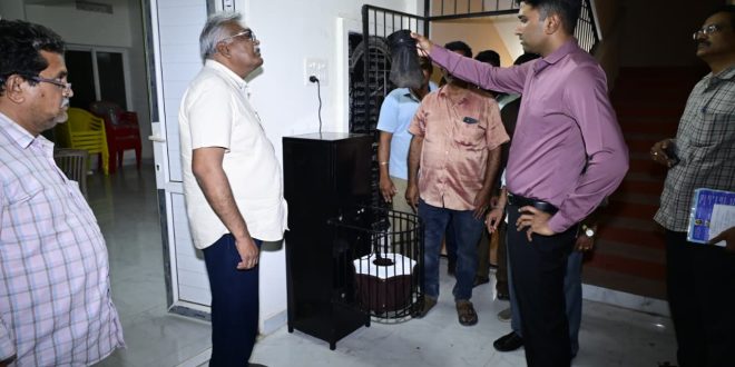 నగరంలో పెరుగుతున్న దోమల సమస్యలను నివారించేందుకు విజయవాడ నగరపాలక సంస్థ “స్పాట్ మస్కిటో ఎలిమినేటర్” మెషిన్ను ట్రయిల్ లో భాగంగా కరెన్సీ నగర్, 14వ సచివాలయంలో ఏర్పాటు చేశారని విజయవాడ నగరపాలక సంస్థ కమిషనర్ ధ్యాన చంద్ర అన్నారు. బుధవారం సాయంత్రం కరెన్సీ నగర్ లో ఏర్పాటు చేసిన ఈ యంత్రాన్ని క్షేత్రస్థాయిలో పరిశీలించారు. ఈ సందర్భంగా కమిషనర్ మాట్లాడుతూ నగరంలో పెరుగుతున్న దోమల సమస్యలను ఆధునిక సాంకేతికతతో నివారించేందుకు విజయవాడ నగరపాలక సంస్థ అడుగులు వేస్తుందని అన్నారు. అందులో భాగంగా స్పాట్ మస్కిటో ఎలిమినేటర్ యంత్రం పనితీరు పరిశీలించారని, యంత్రం దోమల నివారణకు బాగా పనిచేస్తుందని, ఈ యంత్రాన్ని విజయవాడ నగరపాలక సంస్థ పరిధిలో గల ముఖ్యమైన ప్రదేశాలలో ఎక్కడైతే దోమలు ఎక్కువగా ఉన్నాయో, అక్కడ ఈ యంత్రాన్ని ఏర్పాటు చేసే దిశగా చర్యలు తీసుకుంటున్నామని చెప్పారు. ఆధునిక సాంకేతికతలో మరో అడుగు ముందుకు వేస్తూ “స్పాట్ మస్కిటో సెన్సార్ ట్రాపర్” మెషిన్ను కూడా వాడేటట్టు చర్యలు తీసుకుంటున్నామని ఈ మెషిన్ ద్వారా దోమల గురించి పూర్తి విషయాలు తెలుస్తాయని, అది ఆడదోమ లేదా మగదోమా, మురికి నీళ్లలో నివసించే దోమ లేదా మంచినీరు లో ఉండే దోమ అని తెలుసుకొని ఆ దోమల వల్ల కలిగే డెంగ్యూ, మలేరియా, చికెన్ గునియా, ఫైల్ ఏరియా వంటి వ్యాధులను నివారించవచ్చు అని అన్నారు. అటువంటి యంత్రాలు వివిధ ప్రదేశాలలో అమర్చడం వలన ఆ యంత్రాల పనితీరు ఒక డాష్ బోర్డు ద్వారా తెలుస్తుందని ఆ డాష్ బోర్డులో ఎన్ని మగదోమలు ఉన్నాయి ఎన్ని ఆడ దోమలు ఉన్నాయి ఎన్ని డెంగ్యూ కలిగించే దోమలు ఉన్నాయి అవి ఎక్కడున్నాయో తెలుసుకొని అక్కడ డ్రోన్ల ద్వారా స్ప్రేలు నిర్వహించి ఆ దోమలను నివారించి ప్రజలకు ఎటువంటి అనారోగ్య సమస్యలు తలెత్తకుండా విజయవాడ నగరపాలక సంస్థ అడుగులు వేస్తుందని తెలిపారు. దోమలపై దండయాత్ర చేసేందుకు విజయవాడ నగరపాలక సంస్థ సిబ్బందితోనే కాకుండా ఆధునిక సాంకేతికత యంత్రాలతో దోమల నివారణకు చర్యలు తీసుకుంటుందని తెలిపారు. ఈ పర్యటనలో చీఫ్ మెడికల్ హెల్త్ ఆఫీసర్ డాక్టర్ కె. అర్జునరావు,అసిస్టెంట్ మెడికల్ హెల్త్ ఆఫీసర్ గోపాల నాయక్, బయాలజిస్ట్ వి. కామేశ్వరరావు, సిబ్బంది పాల్గొన్నారు.
