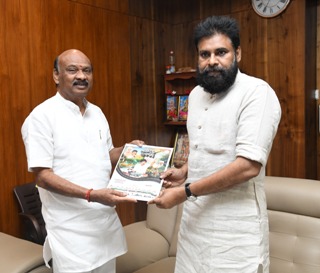 -తొలి ప్రతిని శాసనసభ స్పీకర్ అయ్యన్నపాత్రుడు కి అందజేసిన పవన్ కళ్యాణ్