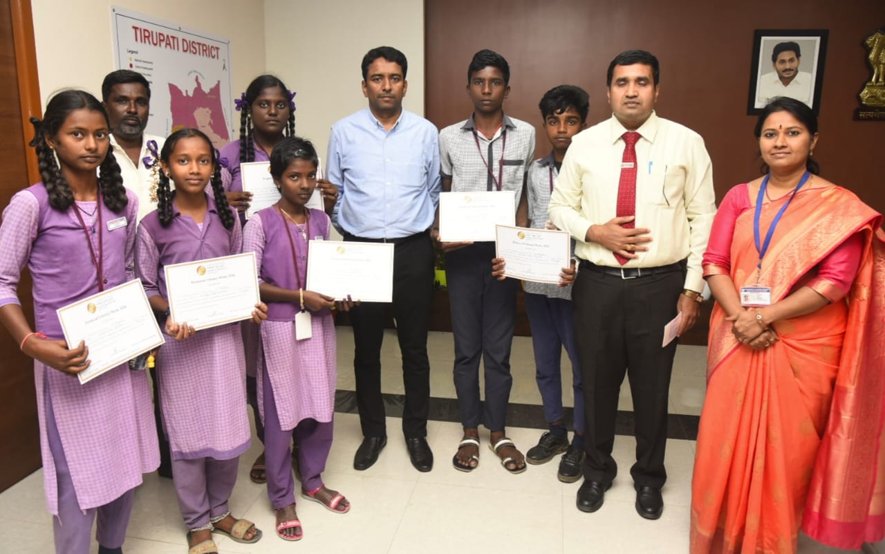 ఆర్థిక అక్షరాస్యత వారోత్సవాలు -2024 రిజర్వ్ బ్యాంక్ ఆఫ్ ఇండియా వారి అధ్వర్యంలో గత నెల ఫిబ్రవరి27 వ తేదిన తిరుపతి గవర్నమెంట్ హై స్కూల్ లో విద్యార్థినీ విద్యార్థులకు వ్యాసరచన, 28 వ తేదిన పిచ్చటూరు జడ్పీ హైస్కూల్ నందు క్విజ్ ద్వారా ఆర్థిక అక్షరాస్యత పై కాంపిటేషన్ నిర్వహించడం జరిగింది . ఈ విభాగాల పోటీలలో గెలుపొందిన విద్యార్థినీ, విద్యార్థులకు మొదటి, రెండవ మరియు మూడవ క్యాటగిరి కింద సర్టిఫికెట్స్ తో పాటు ప్రైజ్ మనీ ని నేటి శుక్రవారం నాడు జిల్లా కలెక్టరేట్ నందు కలెక్టర్ డా. జి. లక్ష్మీ శ అందజేసారు. ఈ కార్యక్రమంలో తిరుపతి నగరపాలక కమిషనర్ అదితి సింగ్, లీడ్ బ్యాంకు మేనేజర్ సుభాష్, సమగ్ర శిక్ష సి ఎం ఓ సురేష్, జడ్పీ హైస్కూల్ పిచ్చటూరు ఉపాధ్యాయురాలు మల్లీశ్వరి, వెంకటేశ్వర్లు, తిరుపతి గర్ల్స్ హై స్కూల్ హెడ్మాస్టర్ వెంకట సుబ్బమ్మ తదితరులు పాల్గొన్నారు.